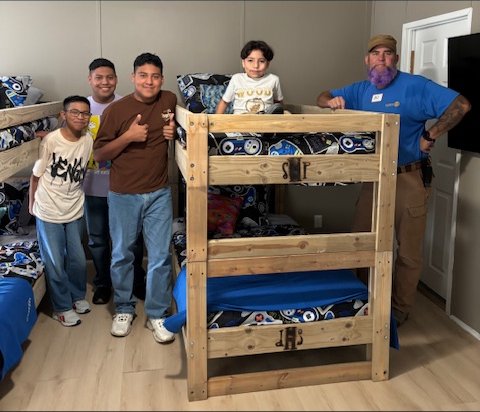Working alongside volunteers from the Rotary Club of Austin’s University Area and members of The Church of Jesus Christ of Latter-day Saints, the team spent the day bringing comfort and hope to families throughout the community. Together, they delivered and assembled beds in nine homes, ensuring that children who had been sleeping on the floor now have a safe and comfortable place to rest.